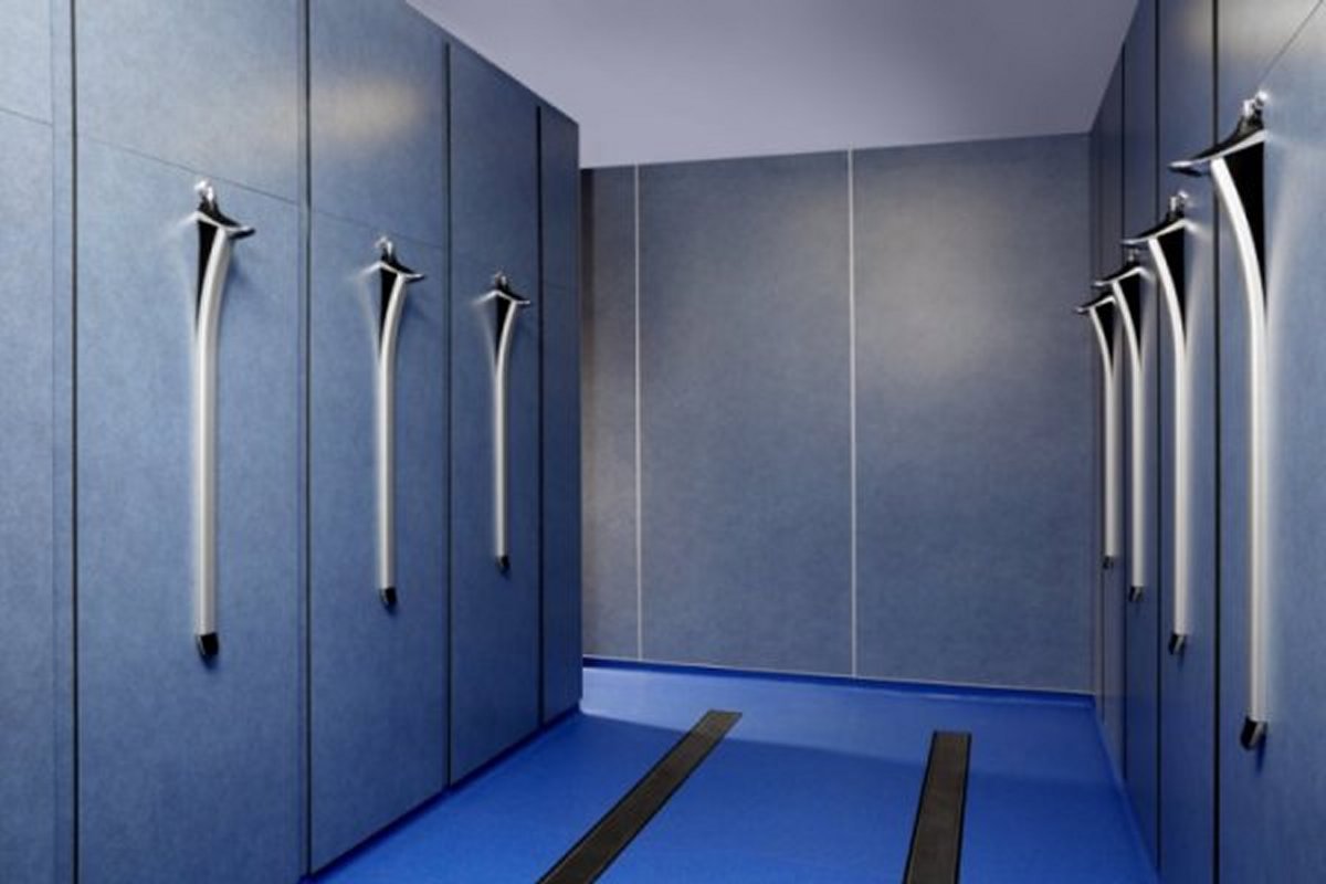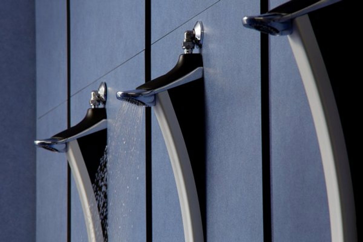 The Duŝo is simply mounted upon the wet-wall panels and in a 6 / 4 staggered arrangement on opposing walls to allow maximum showering space at busy times.