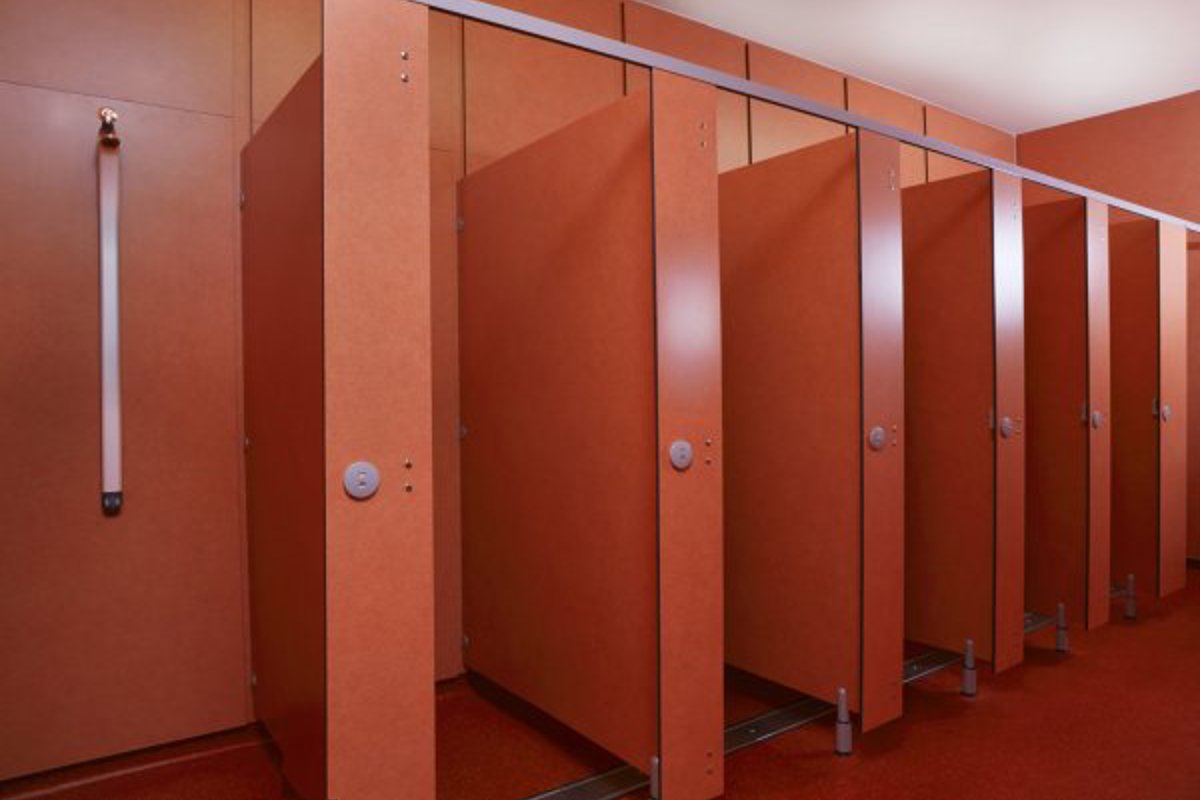 The refurbished facility comprised a open wet room for gents with solid wet-wall paneling, rubber flooring and two covered channels for drainage.