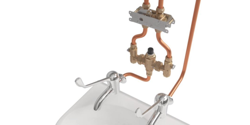 Although a number of Duŝo shower heads could be supplied from a single larger TMV (for example, a Horne 20 can deliver enough flow for 6 shower heads to run simultaneously) the Ardler team preferred to minimise mixed water deadlegs and use more, smaller valves to help Legionella control. The upside to this being that a requirement for reactive maintenance might put only a single shower out of action, plus a range of water temperatures (up to the 41°C recommended maximum) could be offered by setting each valve slightly lower and thus accommodate user's preferences. The downside of this arrangement means that more time must be assigned for planned maintenance of the (10, rather than 2) thermostatic mixing valves in each area.