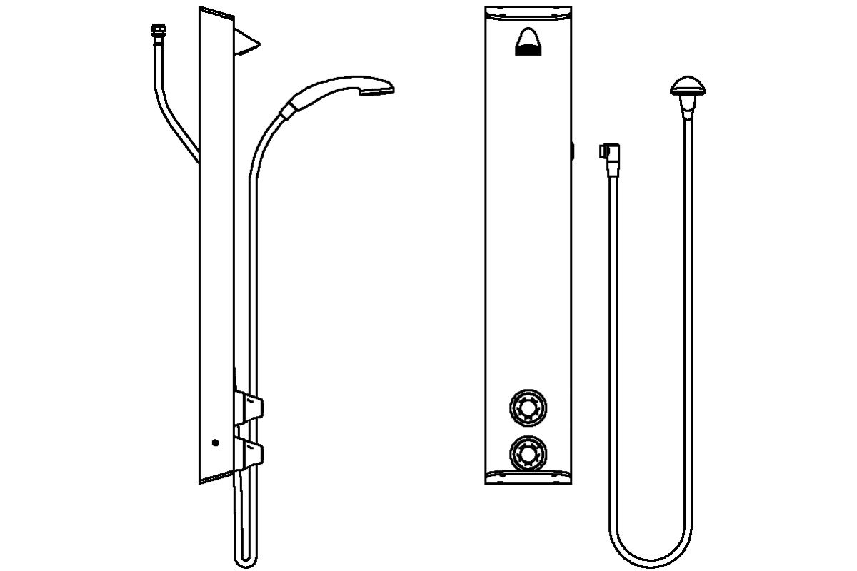 Please note that this shower model is unsuitable for gravity-fed installations and requires a minimum dynamic pressure of 2 bar at each shower head.