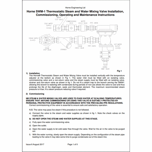 SWM1 Instructions (226KB, pdf) Installation, commissioning, operating and maintenance instructions for Horne SWM1 Steam and Water Mixing Valve. Brochure Ref L-148. Last updated September 2017. More