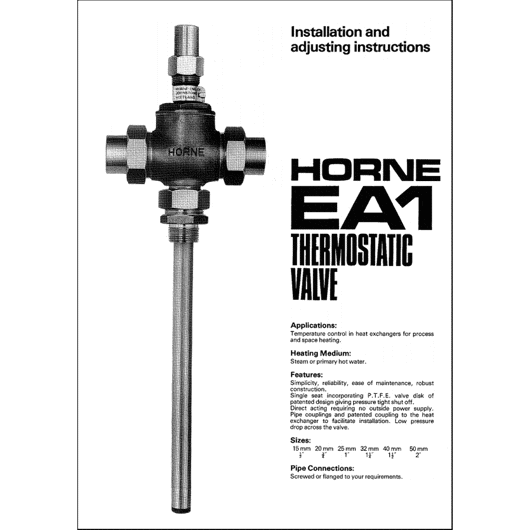 EA1 Instructions (349KB, pdf) L-05: Installation and adjustment instructions for Horne EA-1 thermostatic steam control valve. More